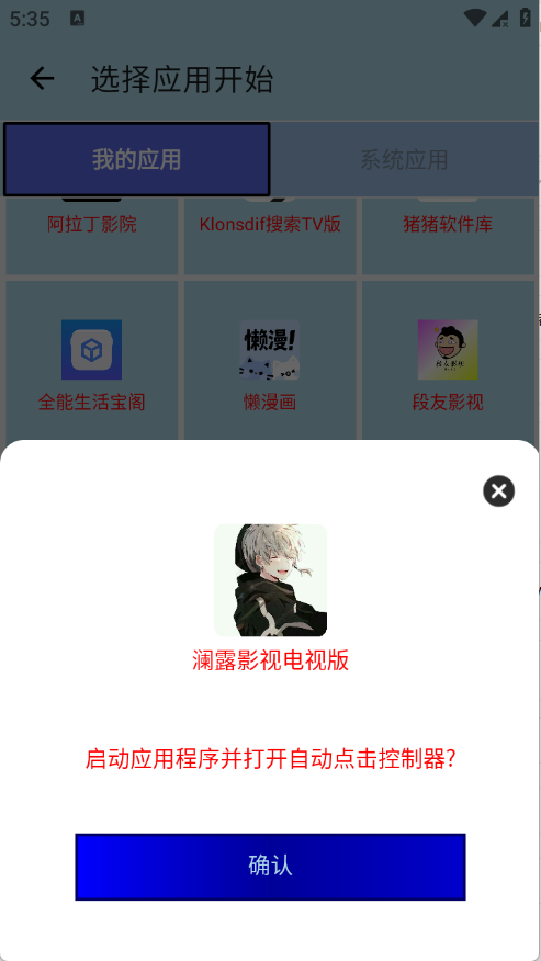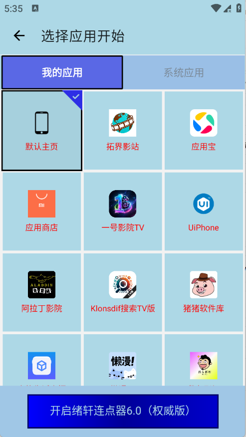 3、点击选择应用开始。