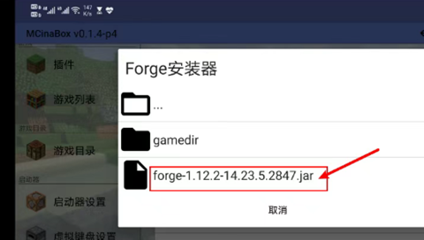 3、接着安装forge,点击安装找到MCinaBox文件夹,点击forge文件。