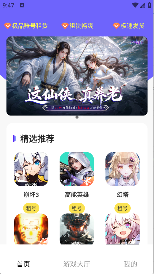 3、游戏大厅页面将游戏账号进行了详细的归类。