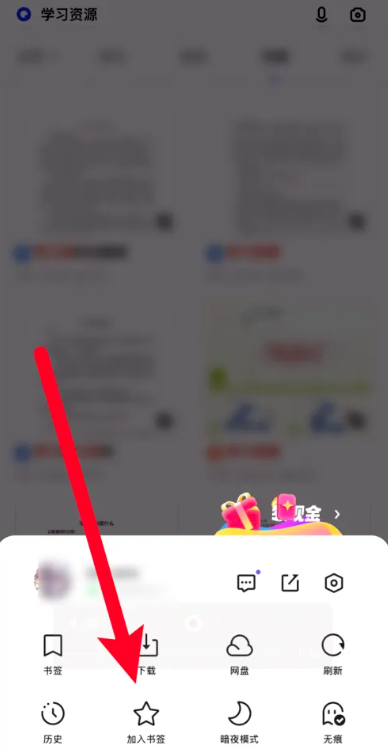 1.打开夸克浏览的网址界面, 点击右下角的菜单图标(在页面中箭头所指的地方)