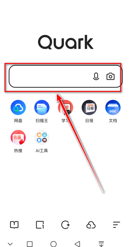 1.首先打开夸克浏览器,点击搜索框。