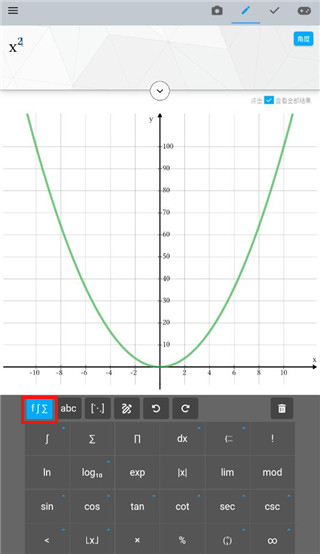 3、点击左上角的科学符号,还可以展开更多的数学符号。