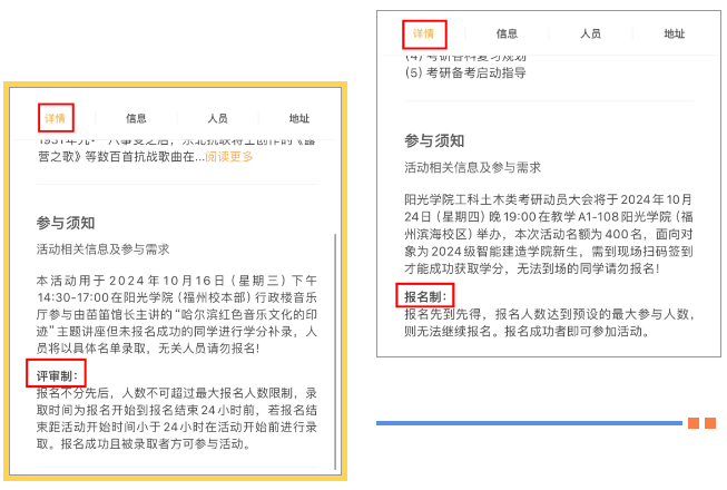 3、评审制(在报名开始时至活动开始前,期间由活动负责人评审录取报名人员)具体请在报名前查看活动详情,及时关注活动通知。