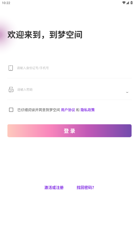 1、打开到梦空间App点击激活或注册
