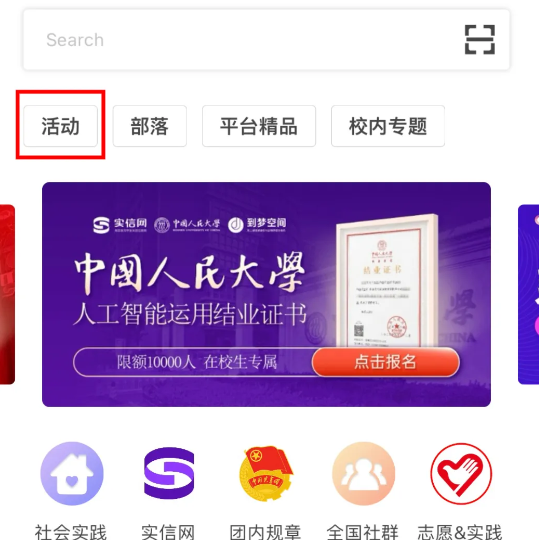 主页点击【活动】按钮,进入“活动”页面,即可浏览所有活动。