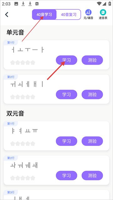 1. 它有着独特的韩语四十音学习方式,元音辅音拼读音变,能助你全面熟记。