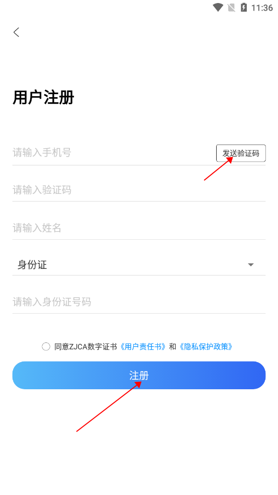 然后获取验证码和输入自己的基本信息就可了