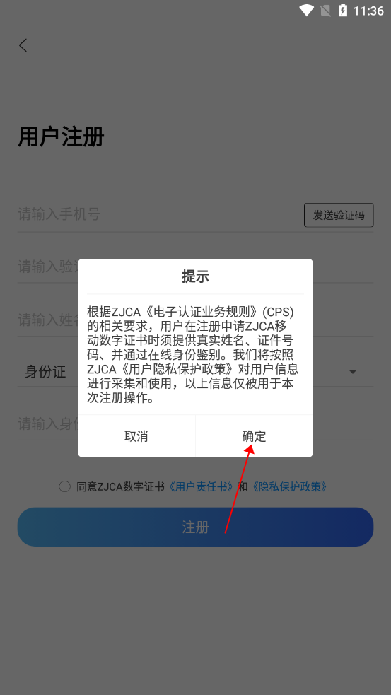 点击确认