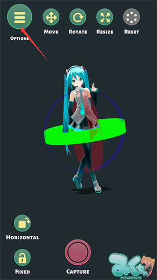 1、打开mikuture,进入主界面,点击左上角的选择按钮