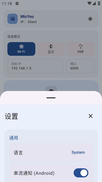 MicYou是让手机和电脑秒变专业无线麦克风的神器,软件自动适配主流视频会议平台如腾讯会议、直播软件及录音工具,即插即用无需复杂设置。独特的自动增益控制功能会动态调整麦克风灵敏度,确保无论轻声细语还是激情解说都能保持最佳音量。针对不同使用场景,软件提供多种预设模式,包括会议模式的清晰人声、歌唱模式的宽广频响、户外模式的强效降噪等。