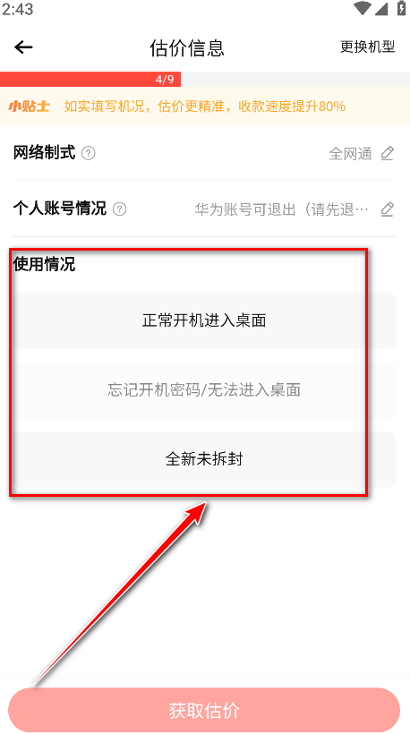 15.点击获取估价。