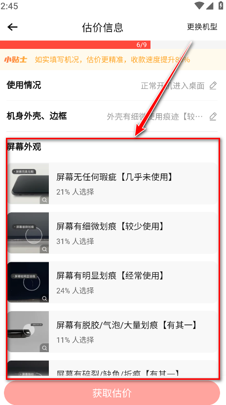 10.选择机身外壳和边框的磨损程度。
