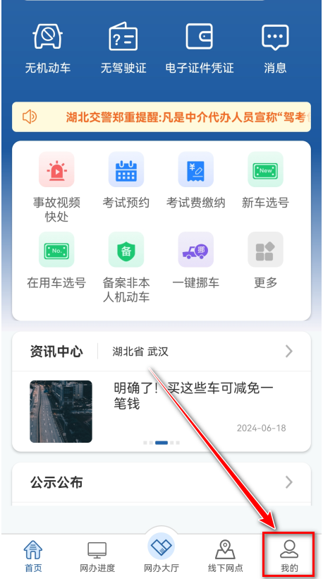 1.打开交管12123,点击我的。