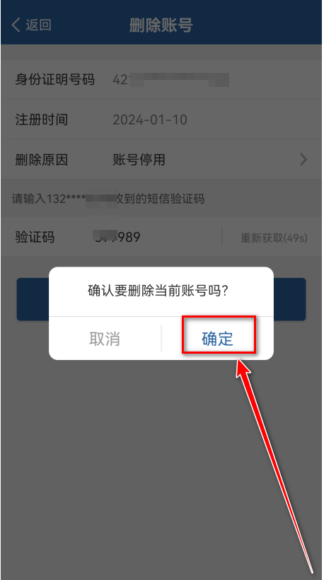 3.点击删除账号。