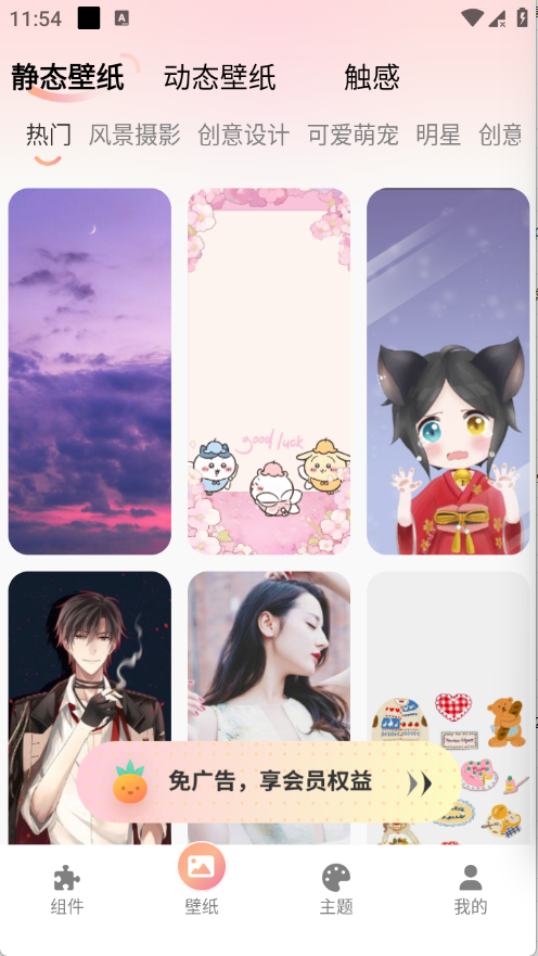 2、壁纸页面包含了很多的壁纸资源类型,静态壁纸以及动态壁纸等类型都有。