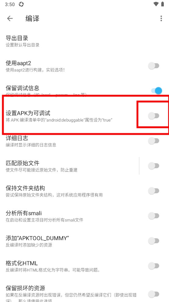 将设置apk为可调试的按钮点亮