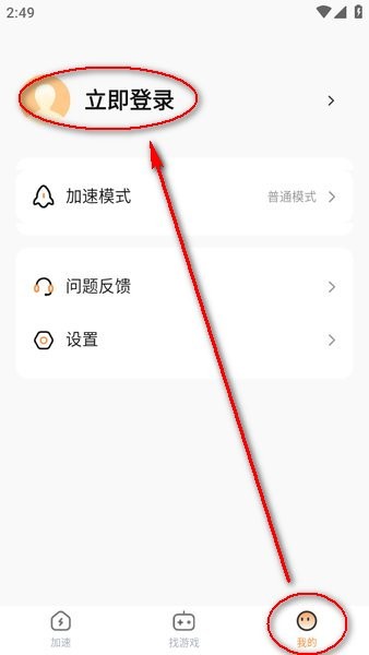1.打开小6加速器后,点击右下角“我的”,并选择左上方的“立即登录”;