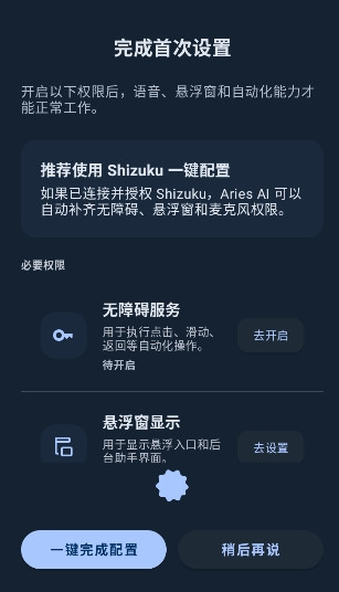 1、打开Aries AI软件,按照要求开启相关权限并完成配置