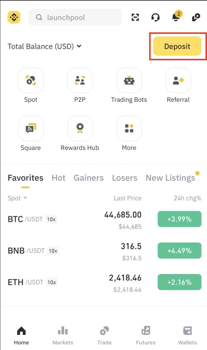 7.点击Trust Wallet中的币安币。