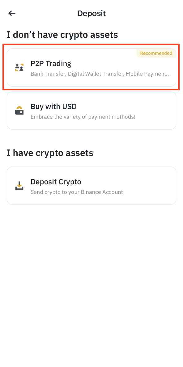 1. 登入币安 App,点击 App 首页的 [储值],然後选择 [C2C 交易]。
