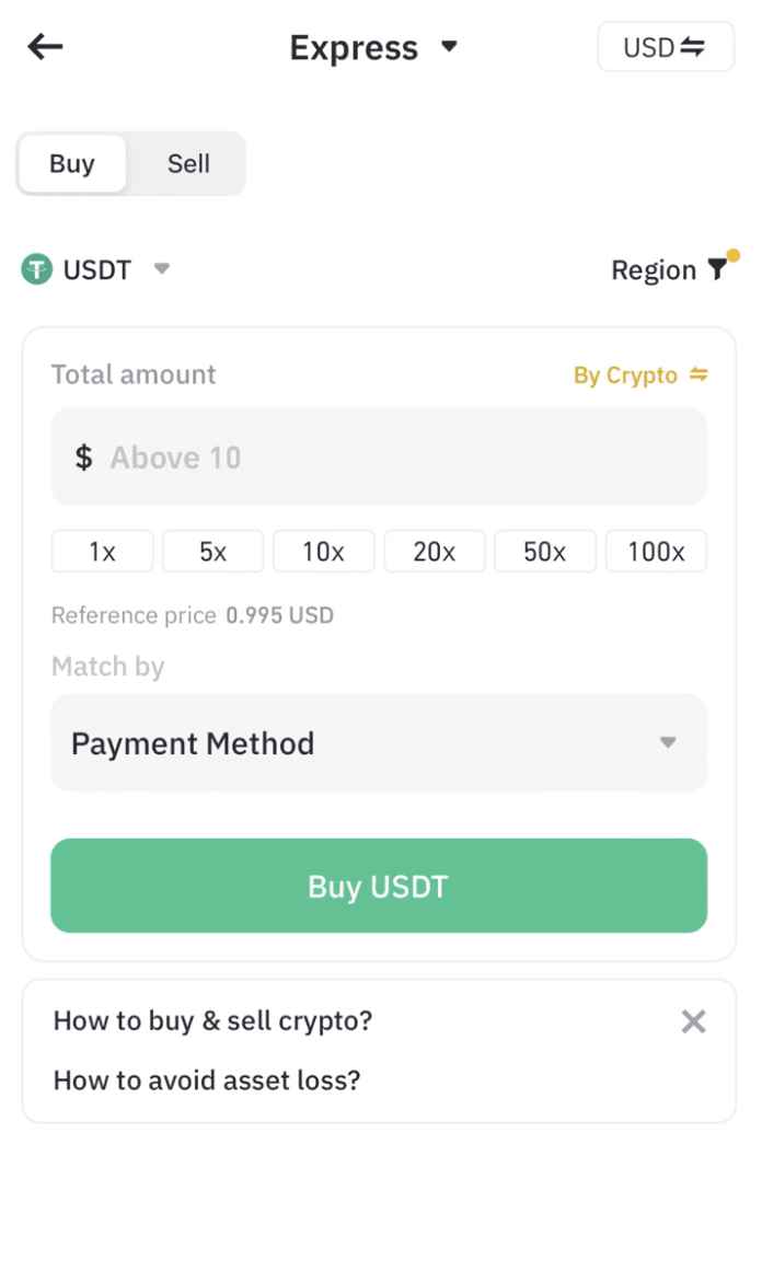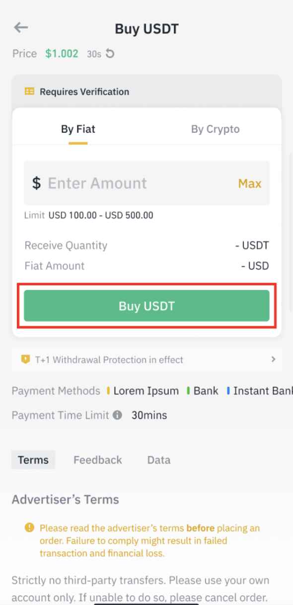 2. 输入欲购买的 USDT 金额。