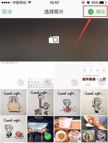 8.可以选择手机相册中的多张图片一起插入,也可以只插入单张;当然,也可以直接拍照。选择好要插入的图片后,点击“确定”按钮。