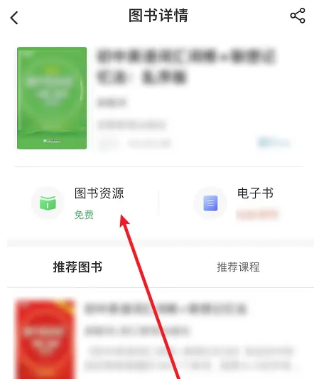 3、打开图书详情页面后,点击图书下方的图书资源。