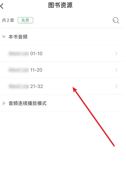2、打开书籍后,点击图书资源,选择图书篇章进行收听。