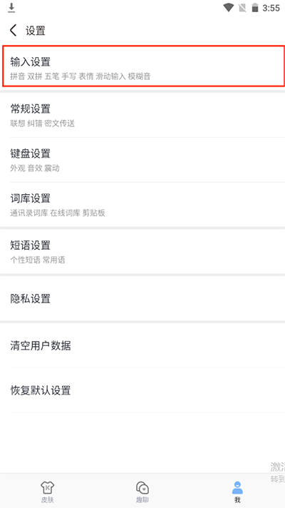 1、根据上一个教程同样来到设置界面,点击“输入设置”;