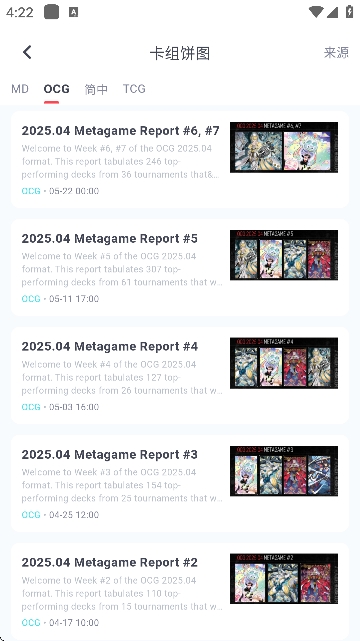 4、在“卡组”专区中,可以浏览各种上位卡组及特殊规则指南。