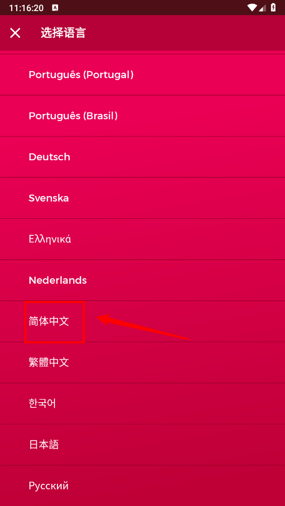 4、最后在选择语言页面,点击切换"简体中文"即可。