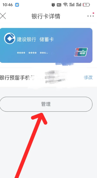 3.点击要解绑的银行卡,下方管理按钮