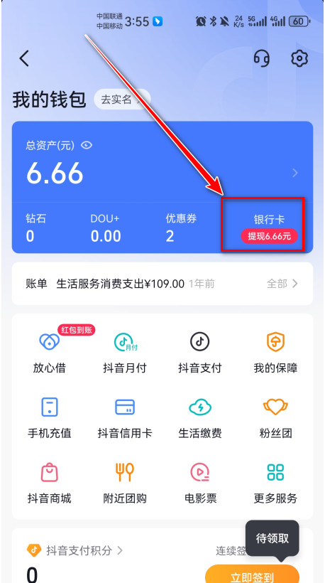 5.点击进入绑定的银行卡右边的三个点,然后点击解绑银行卡。
