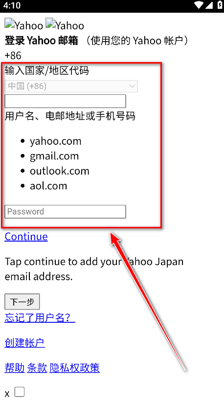 1.打开雅虎邮箱,自定义选择并点击使用Yahoo账户登录或者谷歌账户登录,小编点击的是前者。