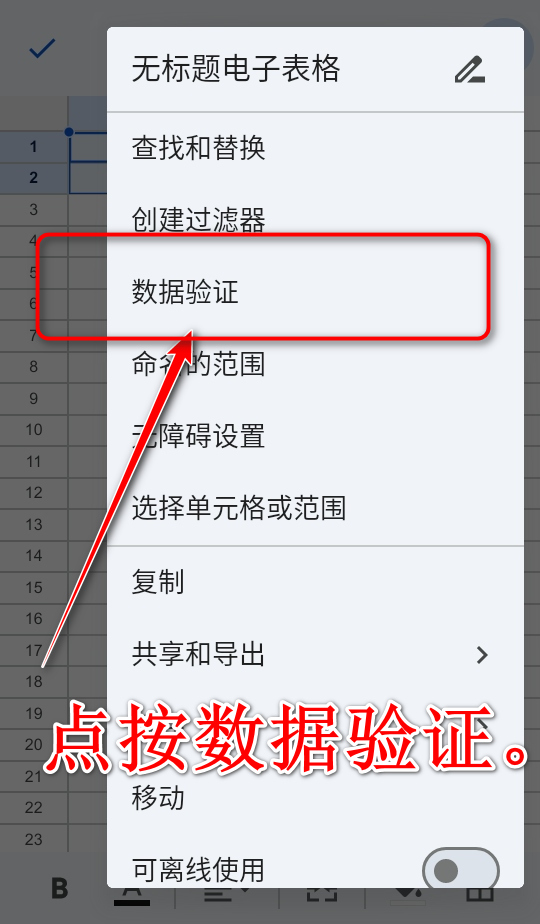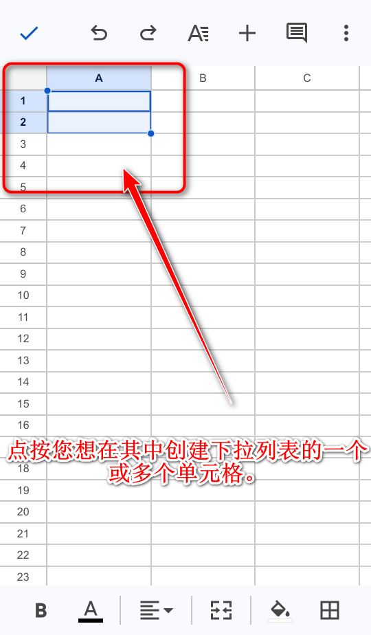 2.点按您想在其中创建下拉列表的一个或多个单元格。