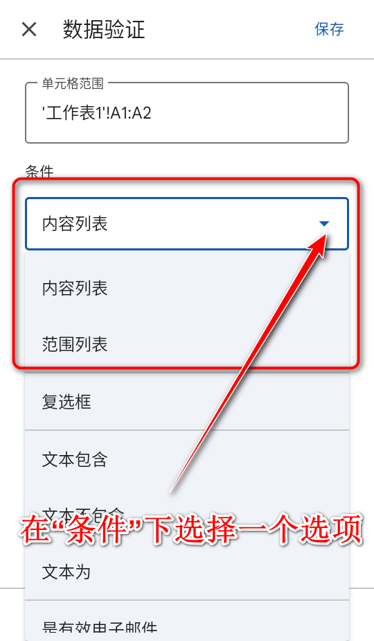 6.点按右上角的保存。相应单元格中会显示下拉列表。