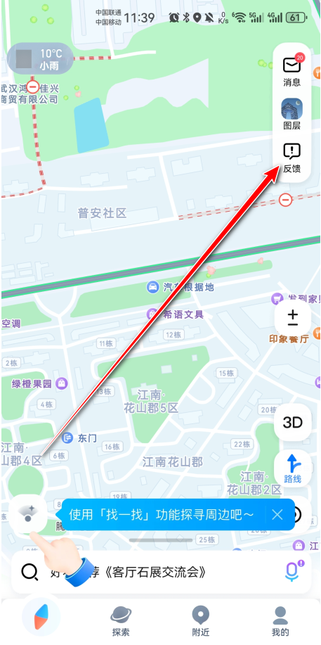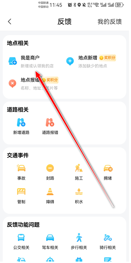 1.在腾讯地图上打开要修改的店铺,点击“反馈”。