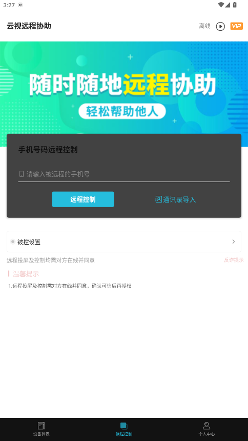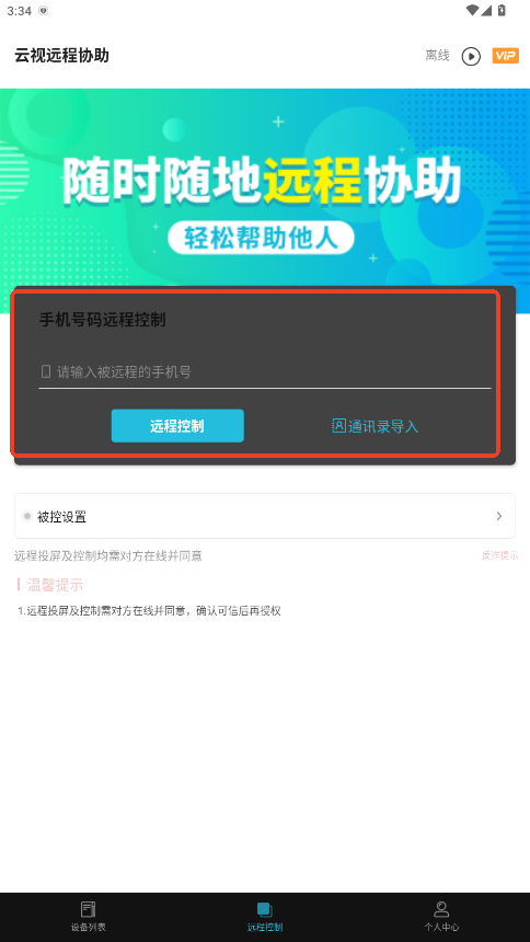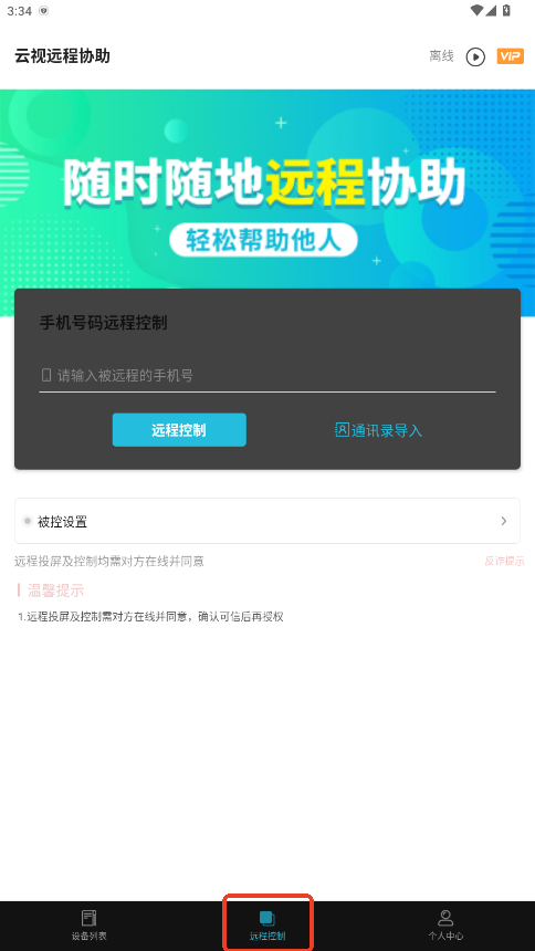 1.打开你的云视远程协助App,点击远程控制功能。