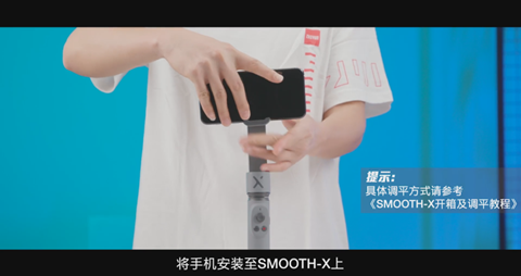 2、将手机安装至SMOOTH-X上,并调节好平衡。