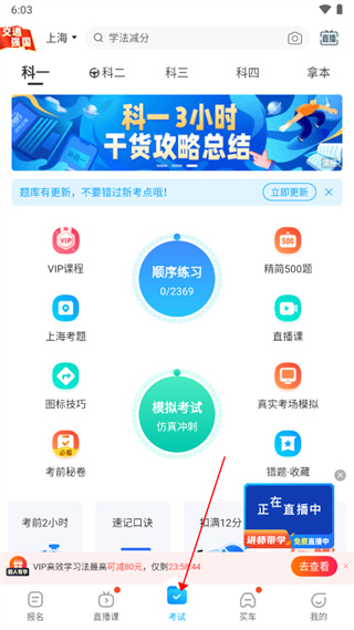 1.打开手机上的APP,把底部导航栏切换到“考试”的页面