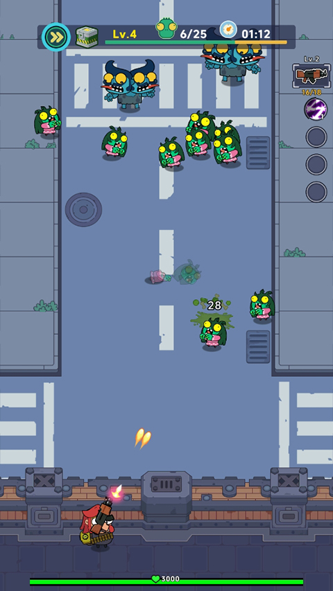 1、进入差不多僵尸官方版游戏后,僵尸进入射程后角色就会自动攻击。