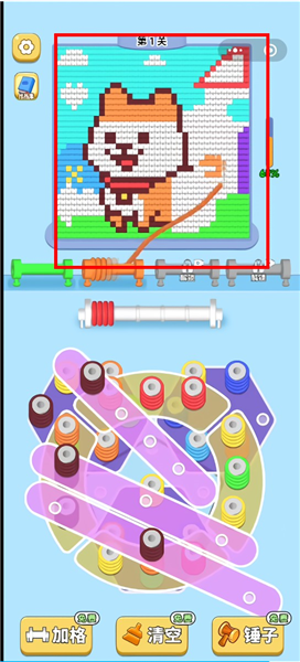 当柱子被毛线完全包裹后,系统会自动将这些毛线填充到上方的谜题框架内。游戏过程中,谜题的填充进度会实时显示在屏幕上方。