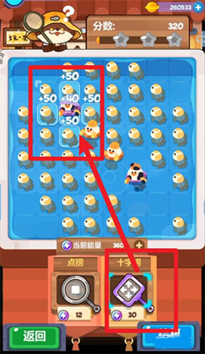 3、然后点击下方的十字捞,点击鱼池的鱼儿;