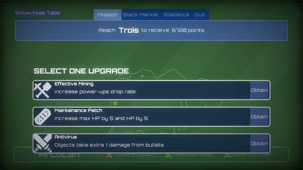 6、成功通关后可以选择一个升级来强化你的飞机,不断闯关来获得更多分数和强化吧。