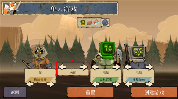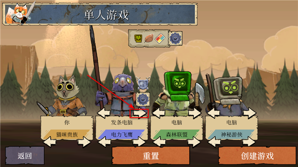 狡诈的猫咪贵族占据了森林之国,想要开发这里的富饶资源。在他们的统治之下,集合了很多森林生物。这个阵营寻求积累资源和扩张猫咪的统治。