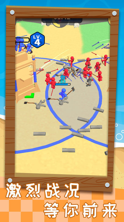 2、建造升级基地:将木块投入己方围栏,用于建造初始基地或升级为更强力的炮台与防御工事。