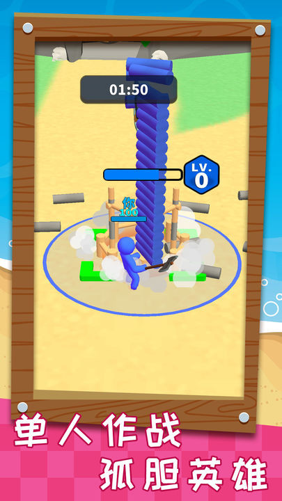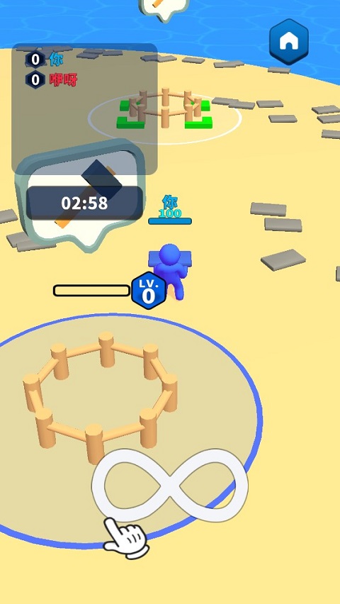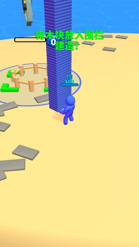 1、收集木块资源:在限定地图内移动角色,自动拾取散落的木材,为后续建造提供基础材料。