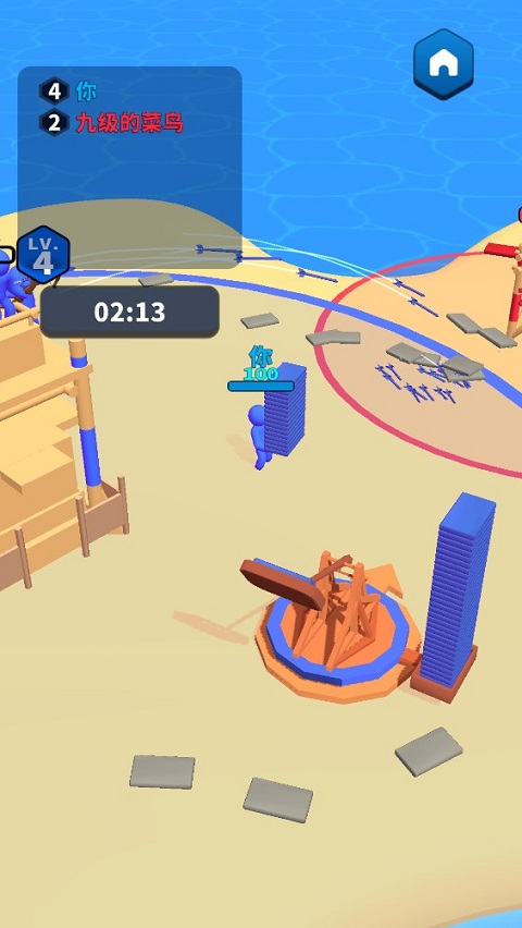 3、不断的收集木块,建造更高级的建筑,利用建筑优势击败对手。