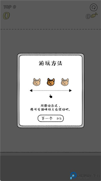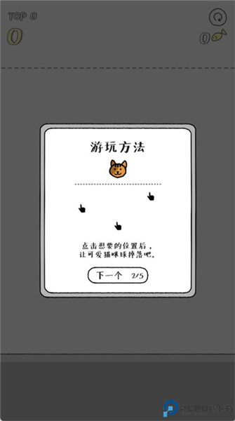 2、点击想要的位置后,让可爱猫咪球掉落吧。