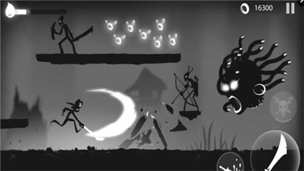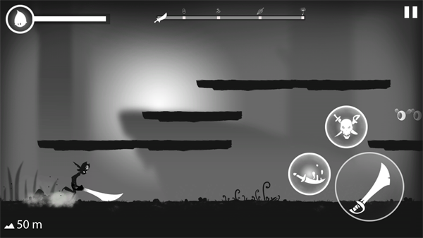 3、采用极简黑白阴影美术风格,摒弃繁杂色彩,用强烈的明暗对比凸显战斗的凌厉与刺激。